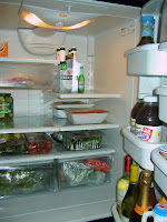 This is our fridge in the country. Because there is no takeout in Sharon and only three restaurants that all close by 8pm, we go shopping and we--okay, okay Evan--cooks. This is the most full refrigerator either of us has had (well, since moving out of our parents' houses).